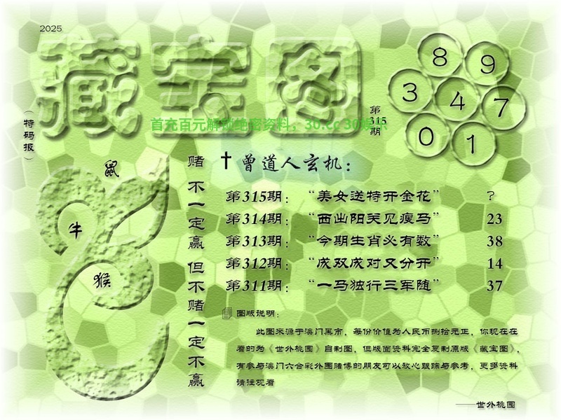 | 314期 | 0-1-3-4-5-7-8 | 羊23准 |
